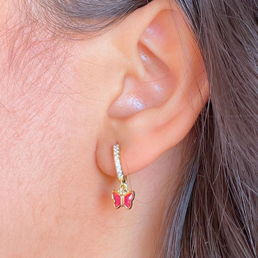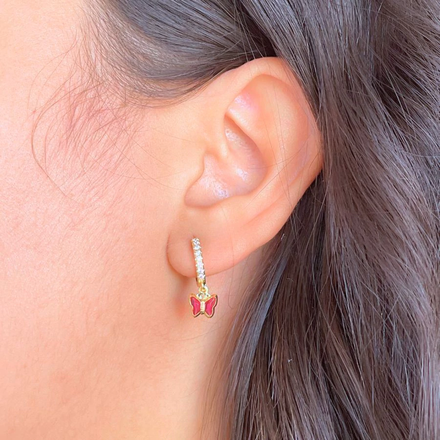 Delicado e encantador, este brinco de argola traz uma borboleta pendurada na cor rosa, adicionando um toque de leveza e charme ao visual. Com acabamento hipoalergênico, é ideal para peles sensíveis, garantindo conforto durante todo o dia. Perfeito para compor looks românticos e femininos com um detalhe cheio de graça.