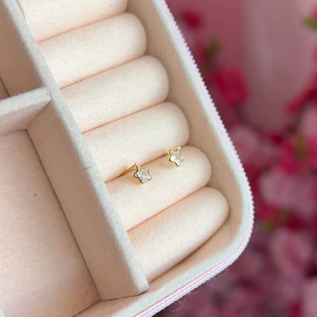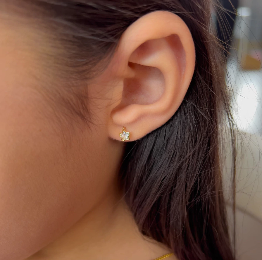 Delicado e cheio de brilho, este brinco infantil em formato de estrela é perfeito para compor looks fofos e encantadores. Produzido com banho de ouro 18k, garante durabilidade e resistência, além de ser hipoalergênico, proporcionando conforto e segurança para a pele sensível das crianças. Com tamanho de 3mm, é ideal para o dia a dia ou ocasiões especiais, oferecendo um toque sutil e elegante. Uma joia que transmite encanto e delicadeza em cada detalhe.