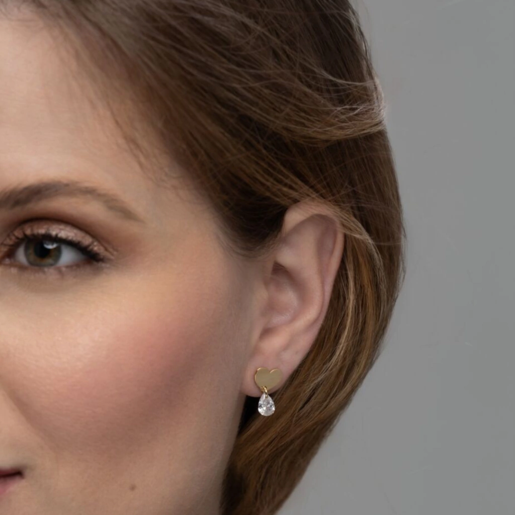 Um toque de romantismo em cada detalhe. Esse brinco combina o design de coração com a elegância da gota em cristal, resultando em uma peça sofisticada e versátil para todas as ocasiões.