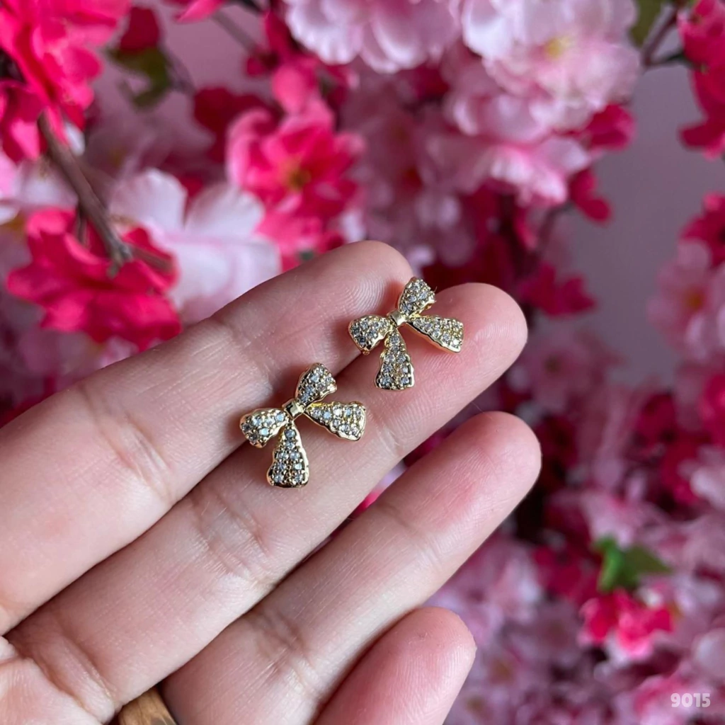Delicado e cheio de charme, o Brinco de Laço Cravejado Banhado a Ouro é uma joia que une romantismo e sofisticação em cada detalhe.