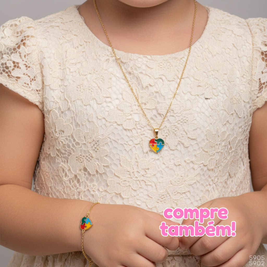 Um acessório delicado e cheio de significado, ideal para presentear com carinho. Nosso colar banhado a ouro possui corrente elo português de 43 cm + 5 cm de extensor, oferecendo ajuste confortável e perfeito para o público infantil. Com as cores da conscientização do autismo — símbolo de amor, inclusão e respeito. Uma joia especial para iluminar o dia a dia das crianças, agregar estilo e transmitir uma mensagem de acolhimento.