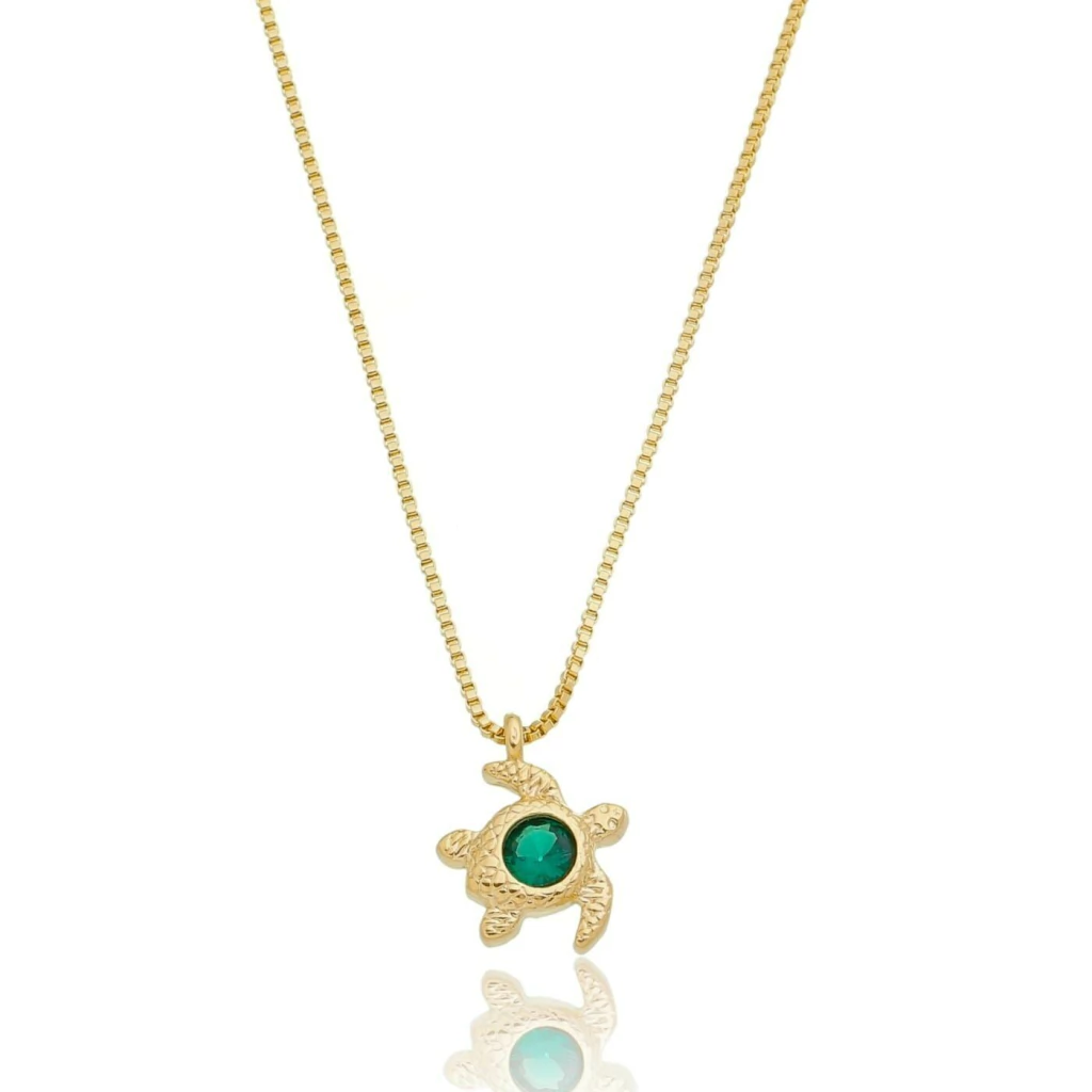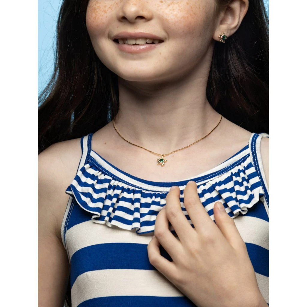 Delicado e cheio de fofura, este colar infantil banhado a ouro traz um pingente em formato de tartaruga, símbolo de proteção e boa sorte. Perfeito para complementar o look das pequenas com charme e estilo em qualquer ocasião.
