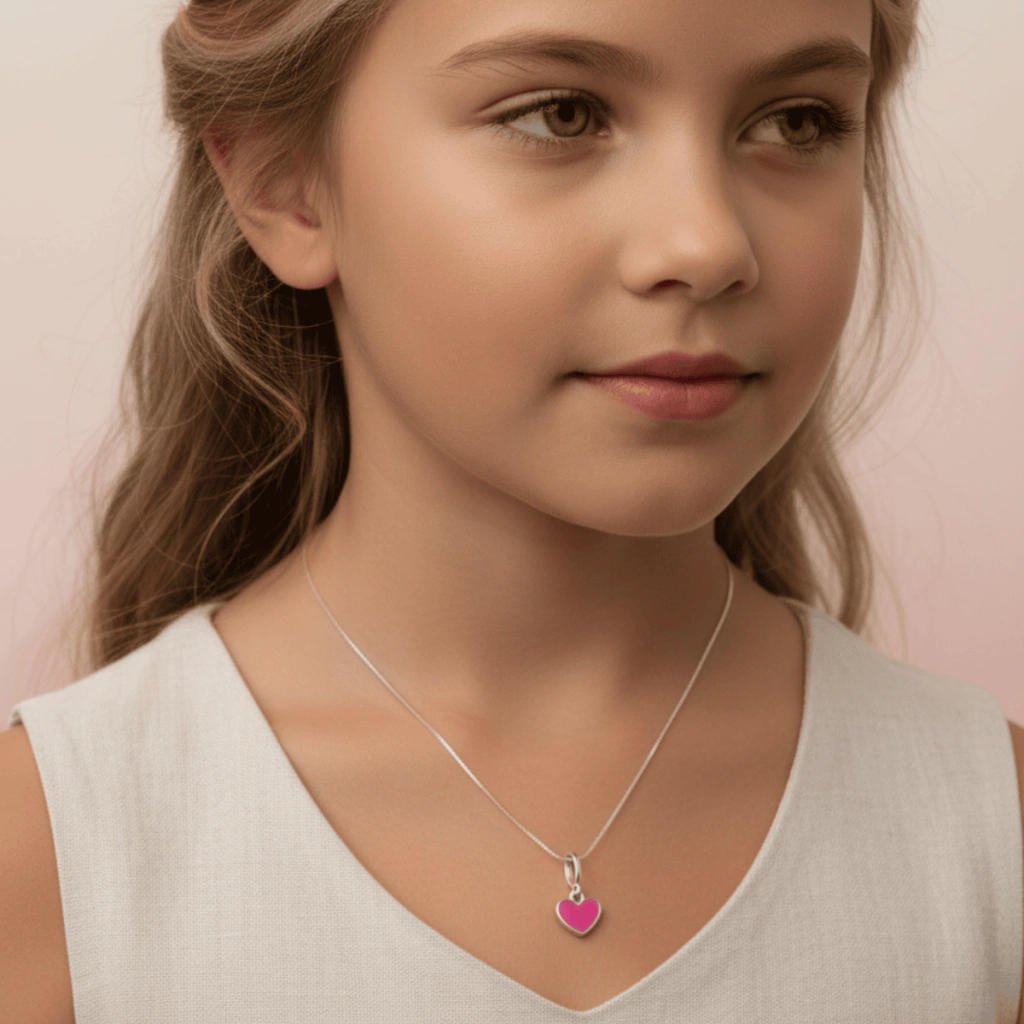 Um colar encantador e versátil, perfeito tanto para crianças quanto para adultos. Produzido em Prata 925 legítima, ele oferece brilho duradouro, qualidade superior e é hipoalergênico, ideal para todos os tipos de pele. O pingente de coração rosa traz um toque delicado e romântico, tornando a peça perfeita para o dia a dia, para presentear ou para compor looks mais especiais.